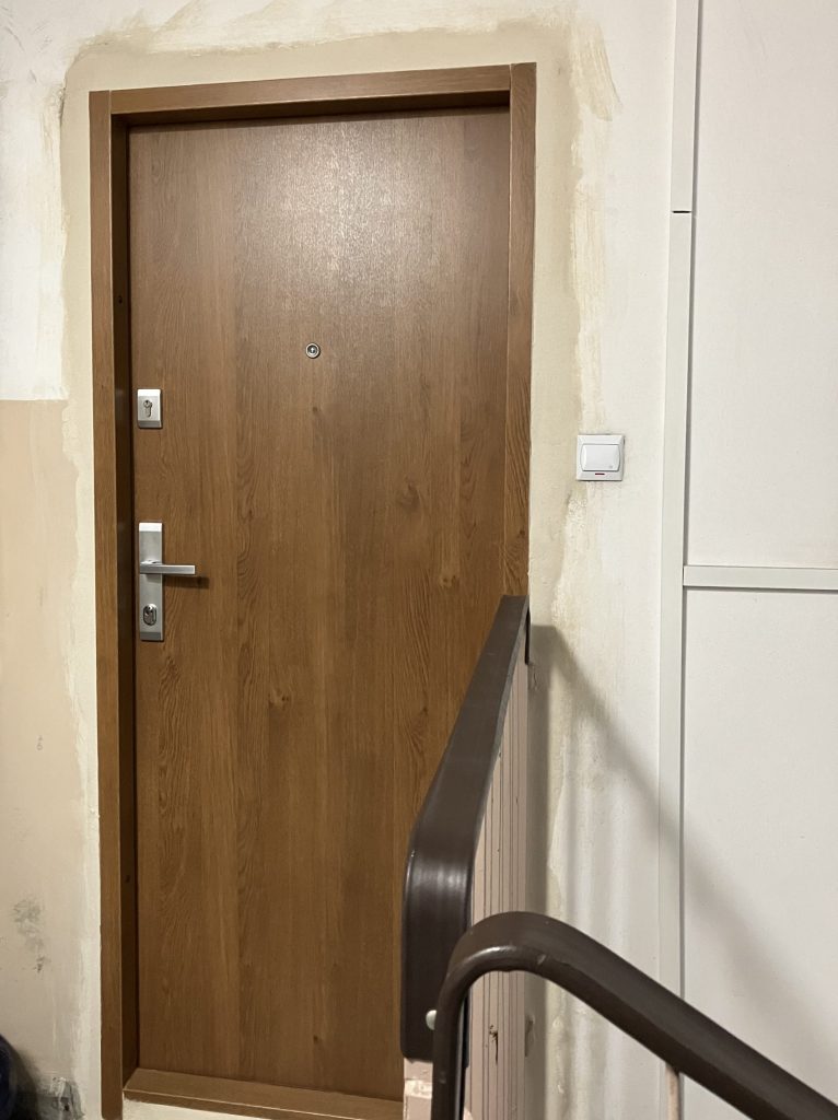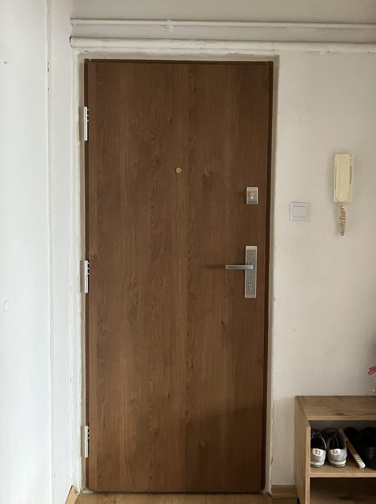 Wymiana drzwi wejściowych do mieszkania na drzwi metalowe antywłamaniowe Gerda PREMIUM 60, wzór W00 płaskie, kolor Winchester. Ościeżnica metalowa z uszczelką i próg metalowy laminowany. Drzwi wyposażone w klamkę BERGEN na szyldzie podłużnym w kolorze Anoda Srebrna, szyld zamka dodatkowego, komplet wkładek kl. 5 w systemie 1-go klucza, wizjer szerokokątny i osłonki na zawiasy. Drzwi w wyposażeniu standardowym posiadają klasę odporności na włamanie RC2 i współczynnik izolacji akustycznej 42 dB.